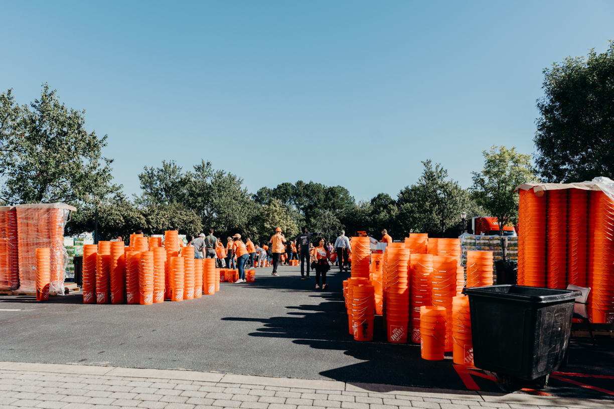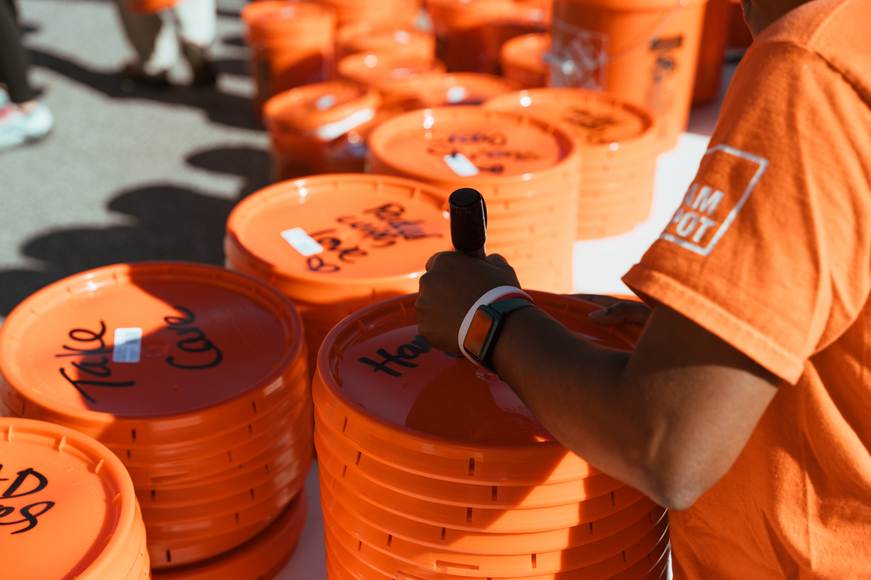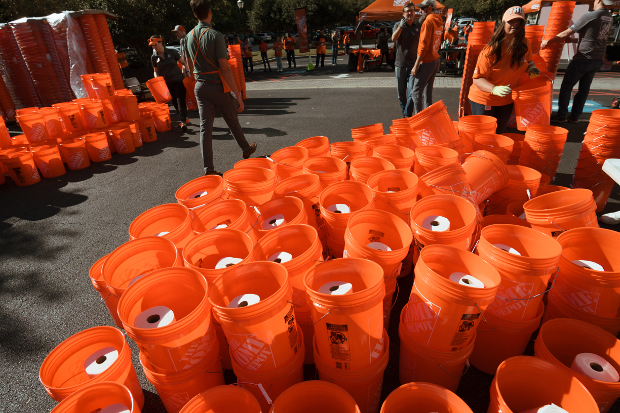 Team Depot, our associate volunteer force, assembles disaster relief buckets full of emergency supplies to quickly deploy to impacted areas. Team Depot donates relief supplies to nonprofits, first responders and government agencies and provides volunteers to clean up in local communities.